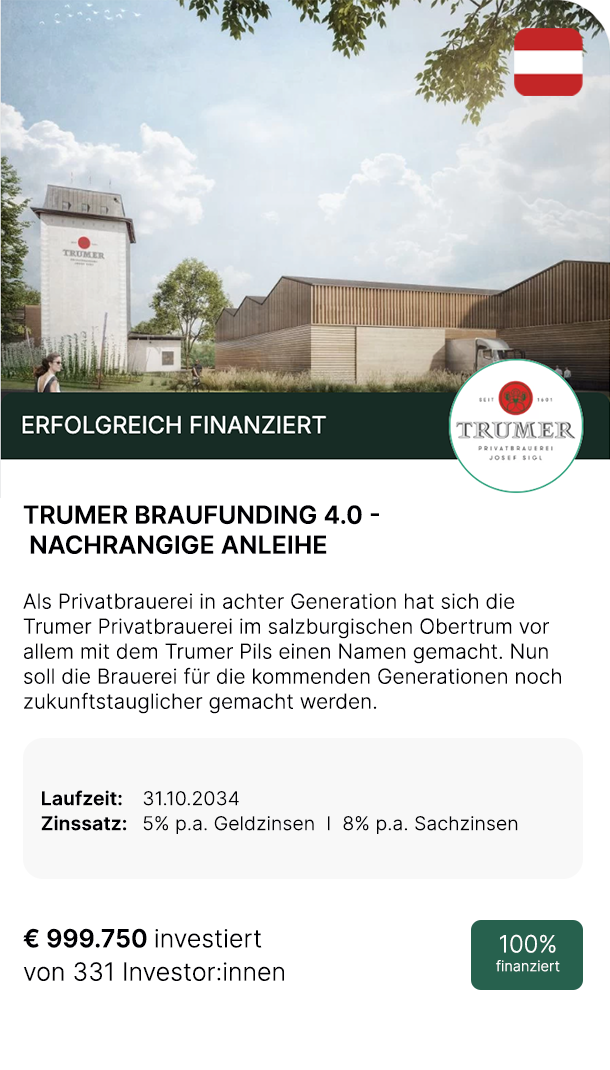 Jedes Investment stärkt die heimische Wirtschaft und eröffnet dir die Chance, direkt am Erfolg teilzuhaben.